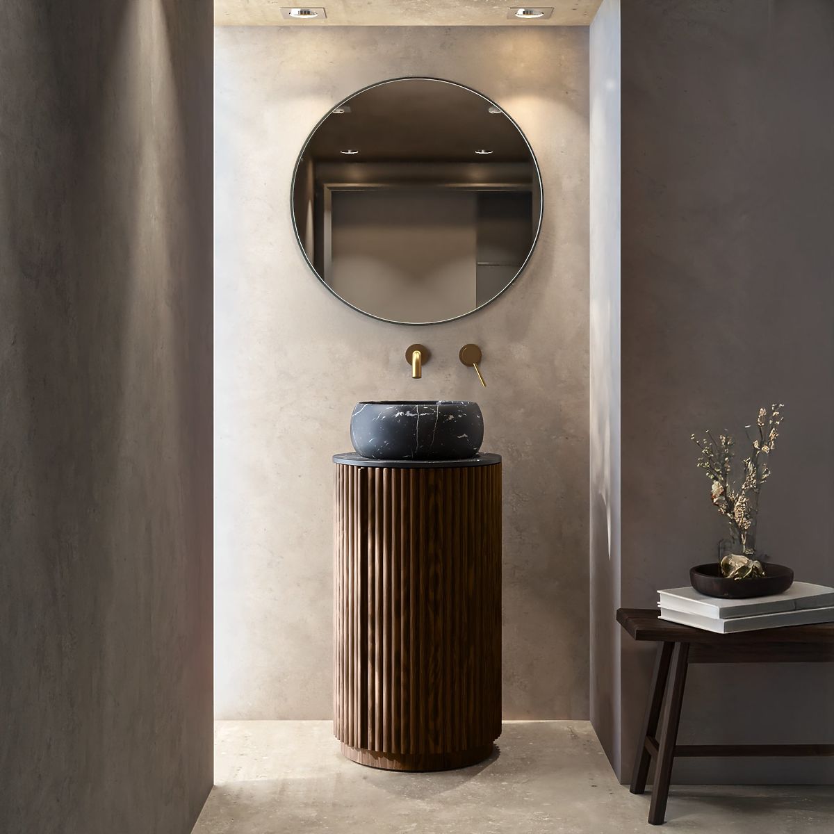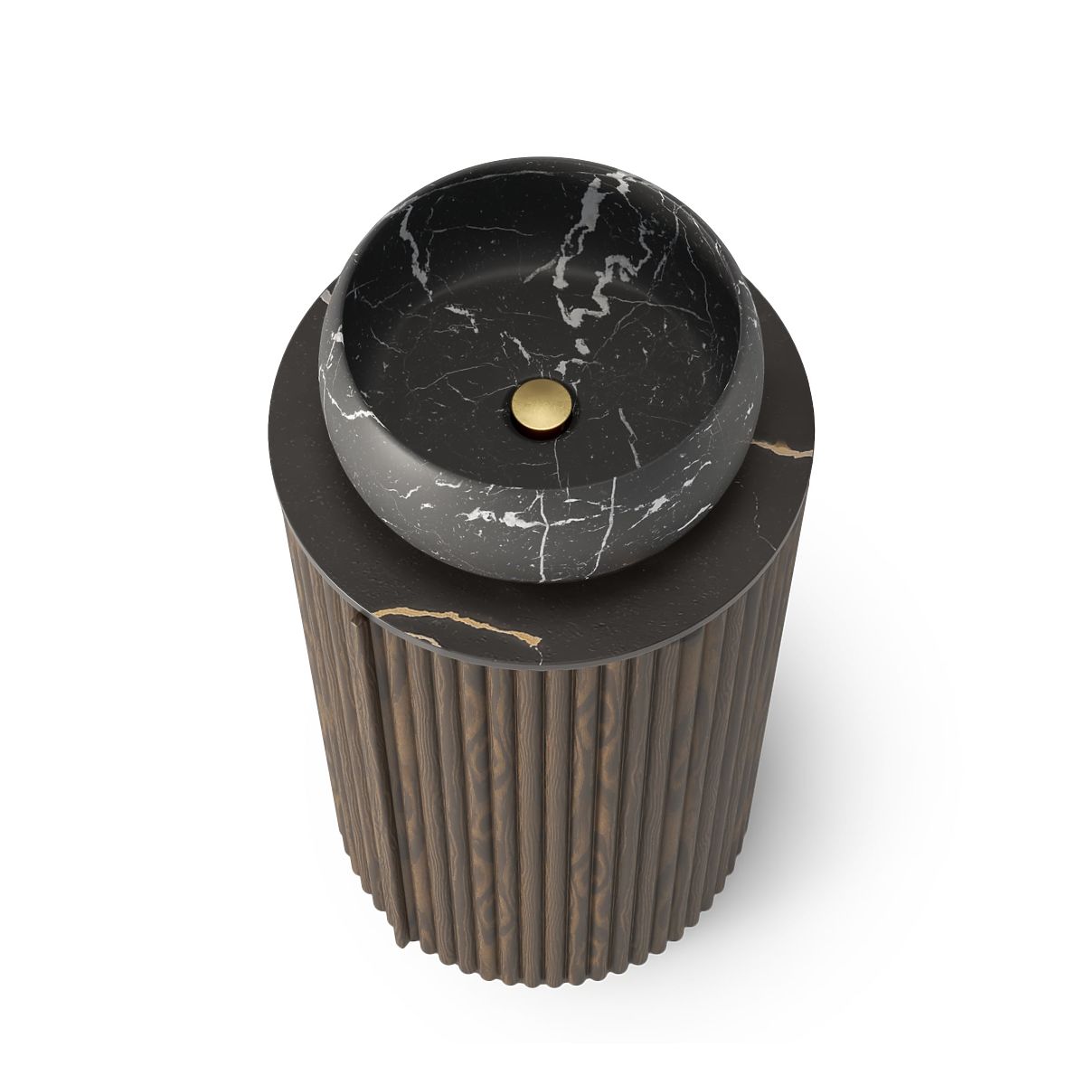 Lukahome.hu » Fürdőszoba és WC / Fürdőszobai szettek / La promessa 40 cm-es szekrény szett mosdóval, bordázott, lekerekített, sötét dió/fekete