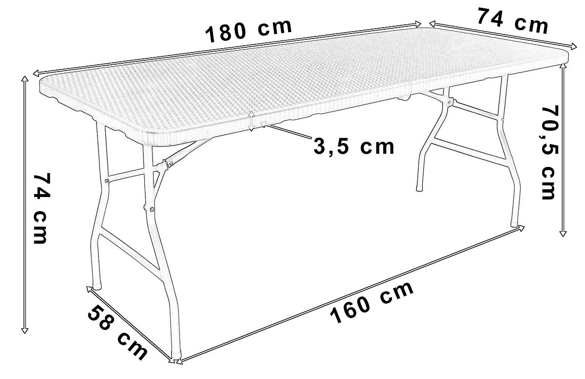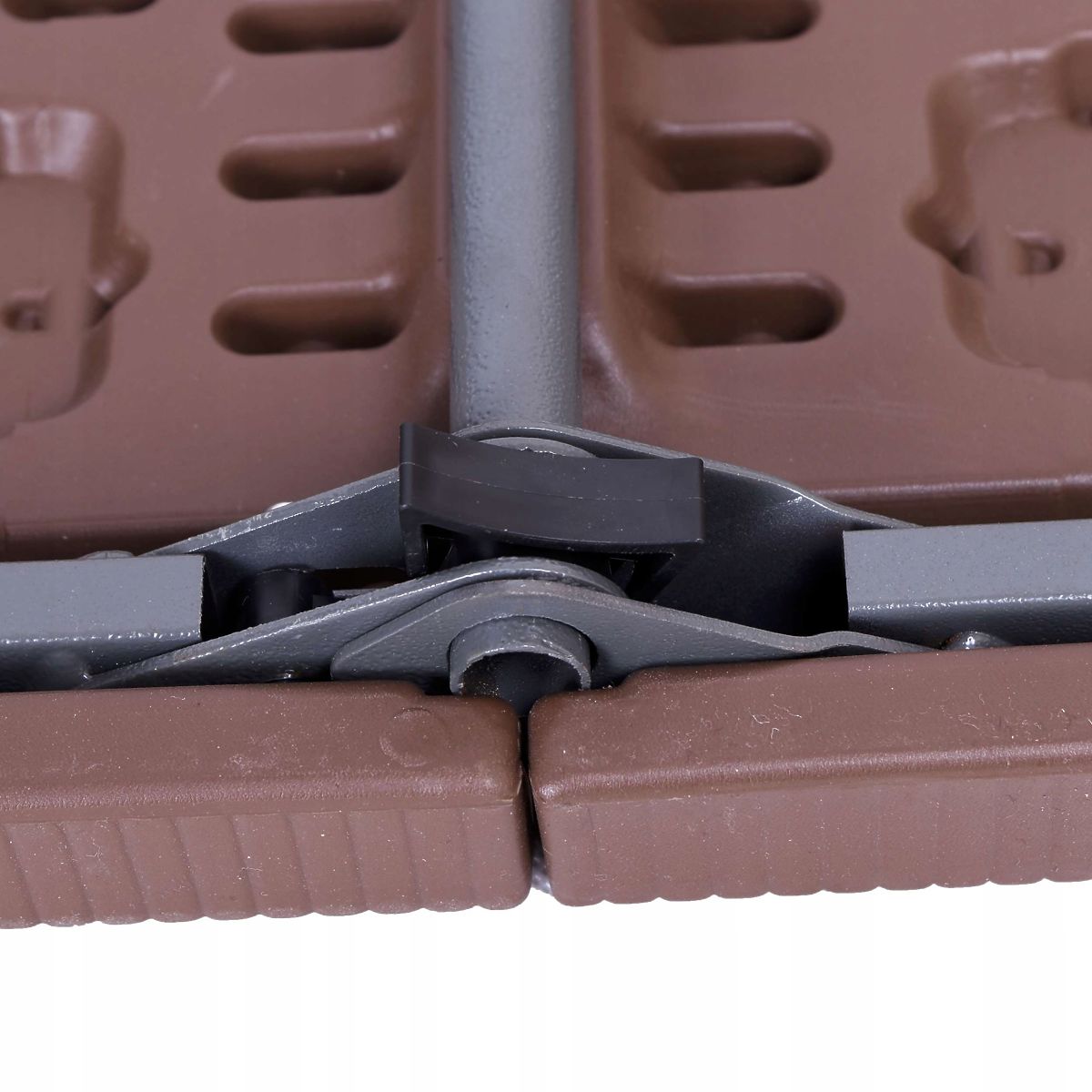 A catering készlet, amely egy 180 cm-es összecsukható asztalból és hat összecsukható székből áll, ideális megoldás különféle eseményekhez. A szilárd, porszórt acél szerkezet garantálja a stabilitást. Az asztallap és az ülőfelületek tartós HDPE anyagból készültek. Mind az asztal, mind a székek könnyen szállíthatók – az asztal kényelmes fogantyúval, a székek pedig a háttámlán található nyílással rendelkeznek a könnyű megfogás érdekében. A készlet időjárásálló, és a csúszásgátló lábak biztosítják a stabilitást.