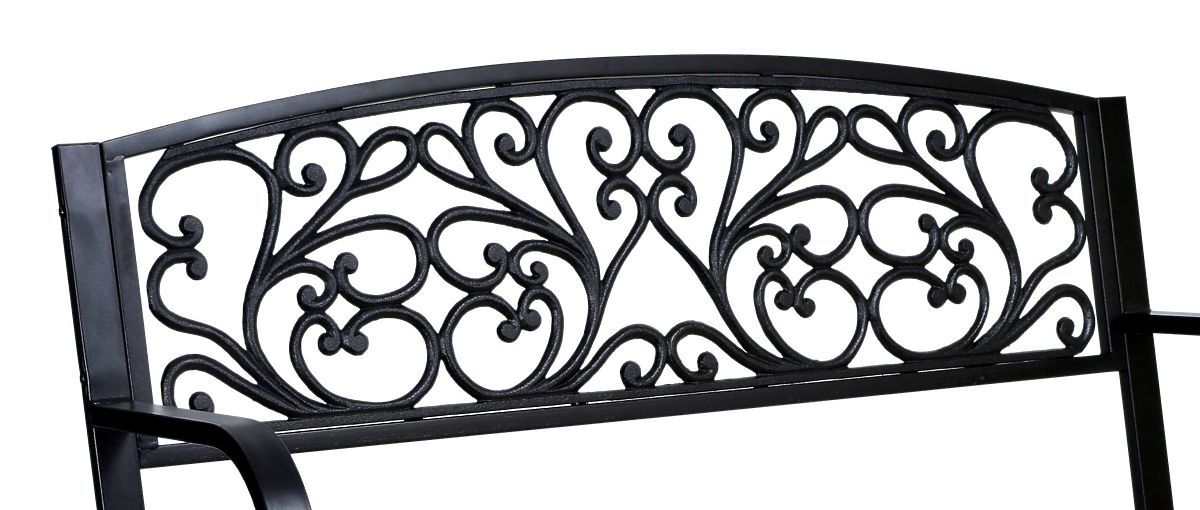 ✅ Dekoratív öntöttvas háttámla: Az egyedi öntöttvas minta nemcsak szépen néz ki, hanem szilárd és kényelmes támaszt is nyújt, növelve a használat kényelmét.