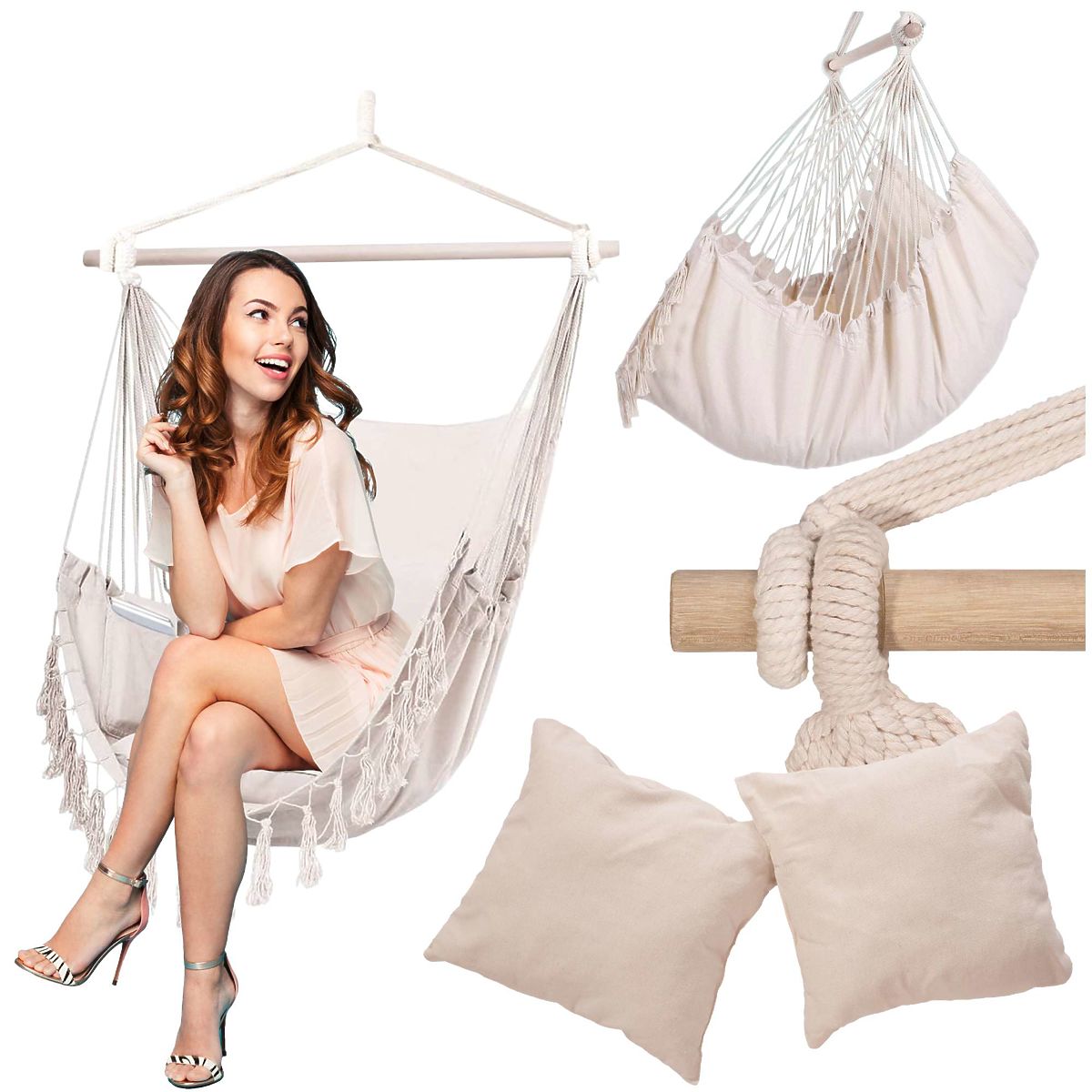 Gyönyörű, divatos, stílusos. A Brazil BAHIO szék a nyár legújabb trendjeire utal - boho stílus. Ha elege van a műanyag anyagokból, az öko híve vagy, és a lehető legközelebb szeretnél lenni a természethez anélkül, hogy elhagynád saját teraszodat vagy kertedet - egyszerűen válaszd a BAHIO-t. A kényelmes ülés biztosítja a komfortos pihenést, és tökéletesen illeszkedik mind a hangulatos belső térbe, mind a zöld kertbe.