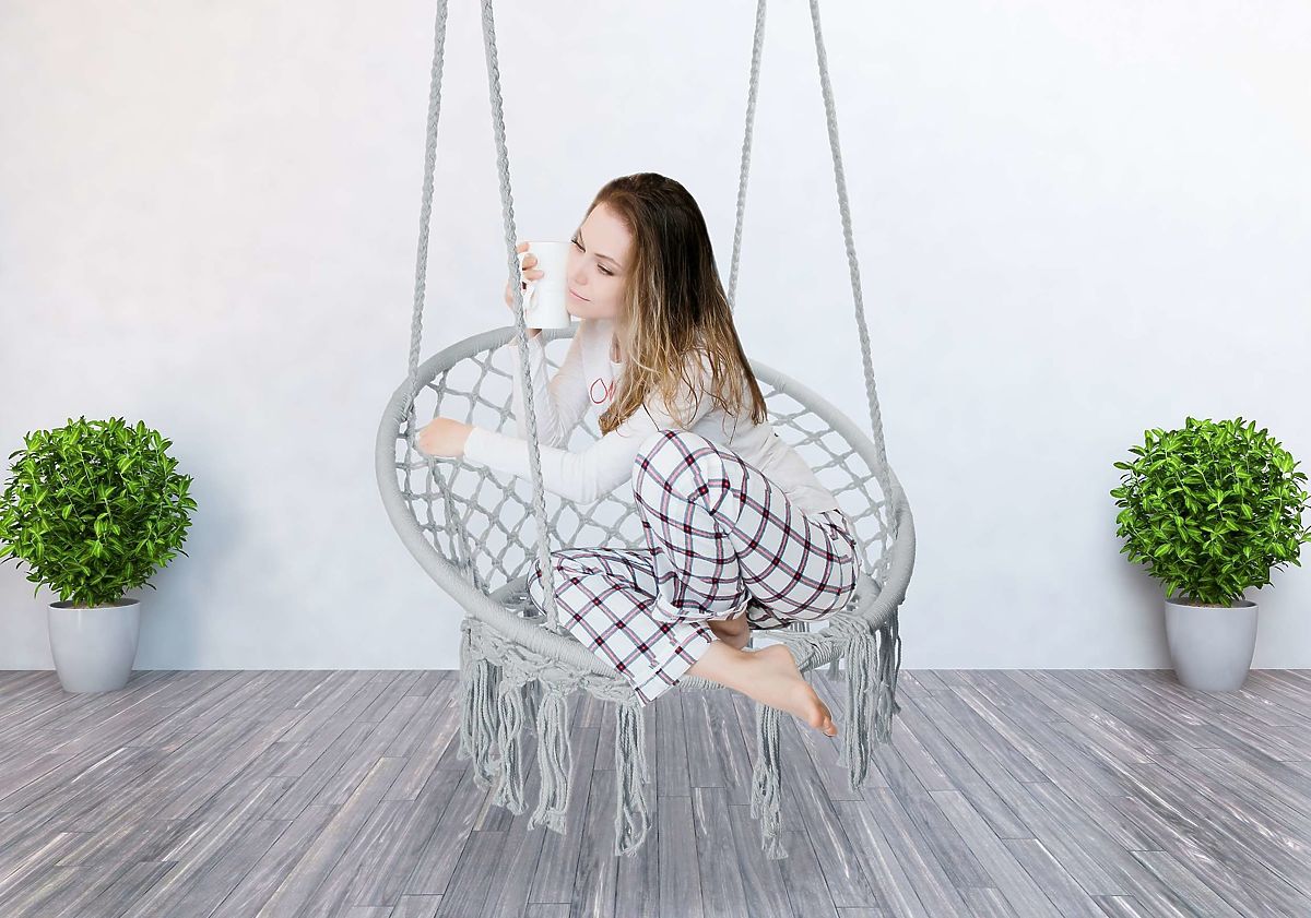 A Togo függőszék összeszerelése is nagyon egyszerű, mivel a felfüggesztéshez használt kötelek fémgyűrűkkel végződnek. Ezért egy vagy két helyen is felakasztható.