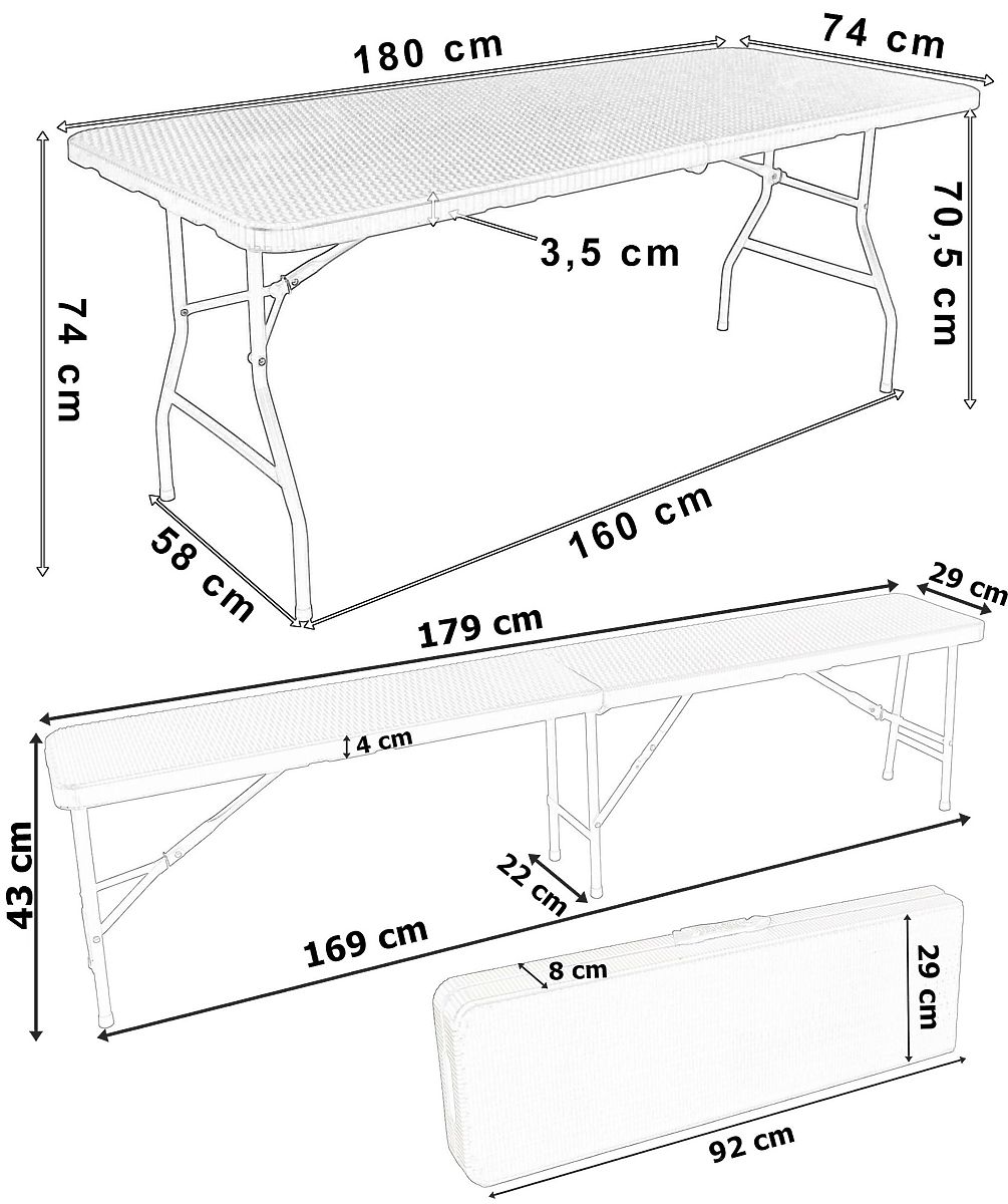 ⭐️ Asztal és padok bőröndbe hajthatók