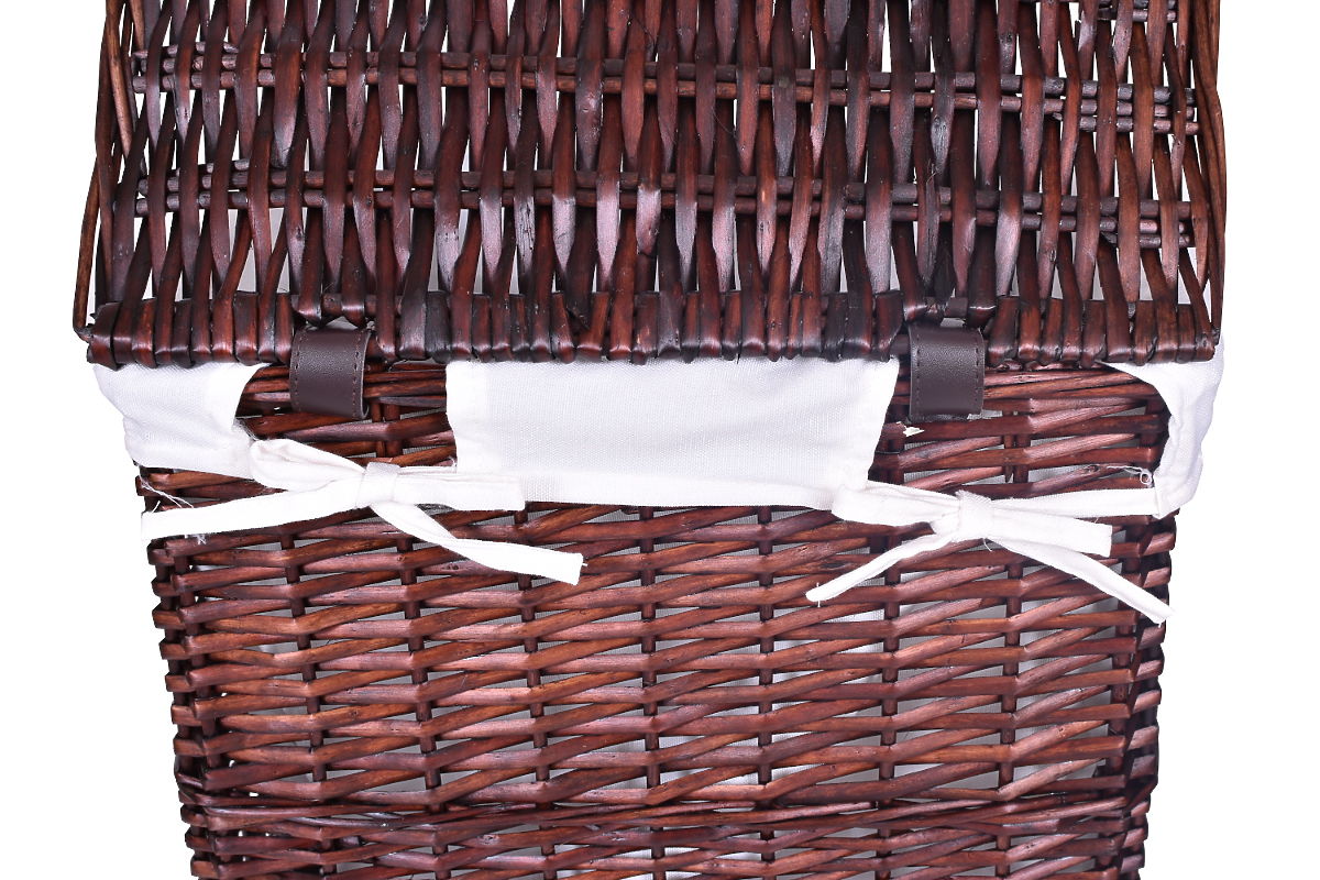 A fonott láda tökéletesen illik a fürdőszobába és más helyiségekbe, mint például a hálószoba, nappali, vagy a dolgozószoba. Nagyon szép kiegészítő, amely karaktert ad a dekorált helyiségeknek. A termék esztétikusan készült fonott anyagból, belseje lenvászon béléssel van ellátva. A fedél rugalmas szalagokkal rendelkezik, amelyek zsanérként szolgálnak.