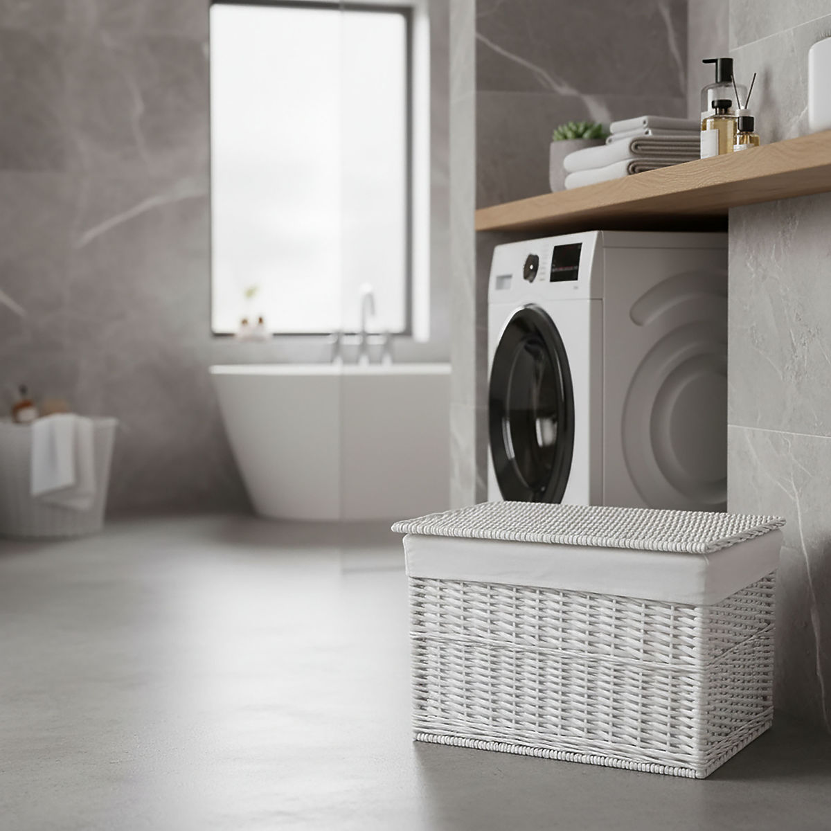 A fonott láda praktikus és stílusos megoldás, amely nemcsak a fürdőszobába, hanem a hálószobába, nappaliba vagy gyerekszobába is tökéletesen illeszkedik. Elegáns kiegészítője a belső térnek, amely otthonosságot és karaktert ad. Természetes fonott anyagból készült, esztétikájával és szilárd kidolgozásával varázsol el, míg a lenvászon bélésű belső tér megvédi a tárolt dolgokat. A láda fedele rugalmas szalagokkal van ellátva, amelyek zsanérként szolgálnak, biztosítva a kényelmes használatot és a tartósságot évekre.