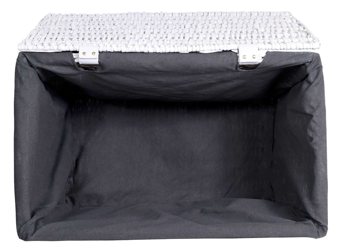 A fonott kosár ideális a fürdőszobába ruhák tárolására. Nagyon szép kiegészítő, amely karaktert ad a dekorált helyiségeknek. A termék esztétikusan készült fonott anyagból, belül lenvászon béléssel van ellátva. A fedél rugalmas szalagokkal rendelkezik, amelyek zsanérként szolgálnak.