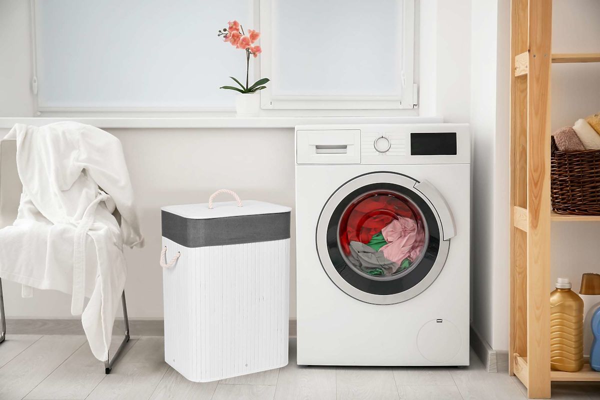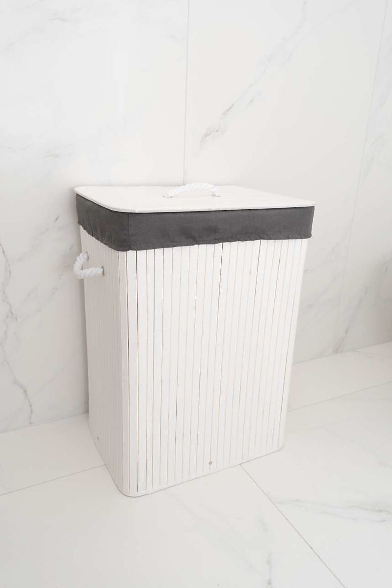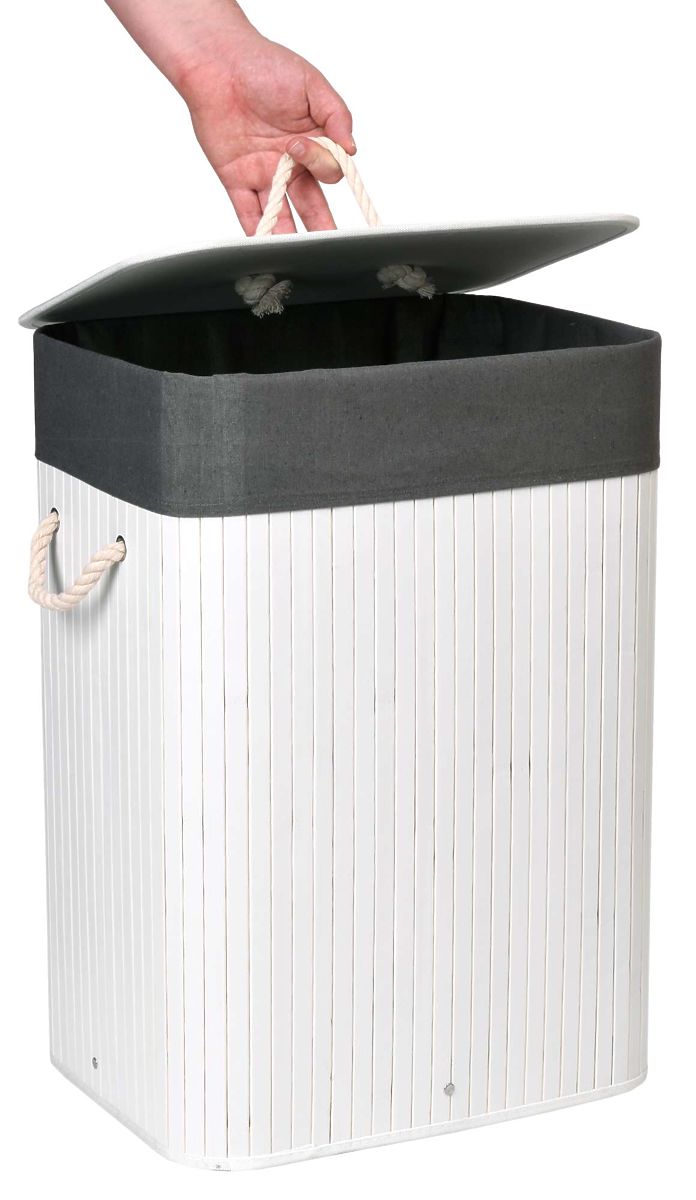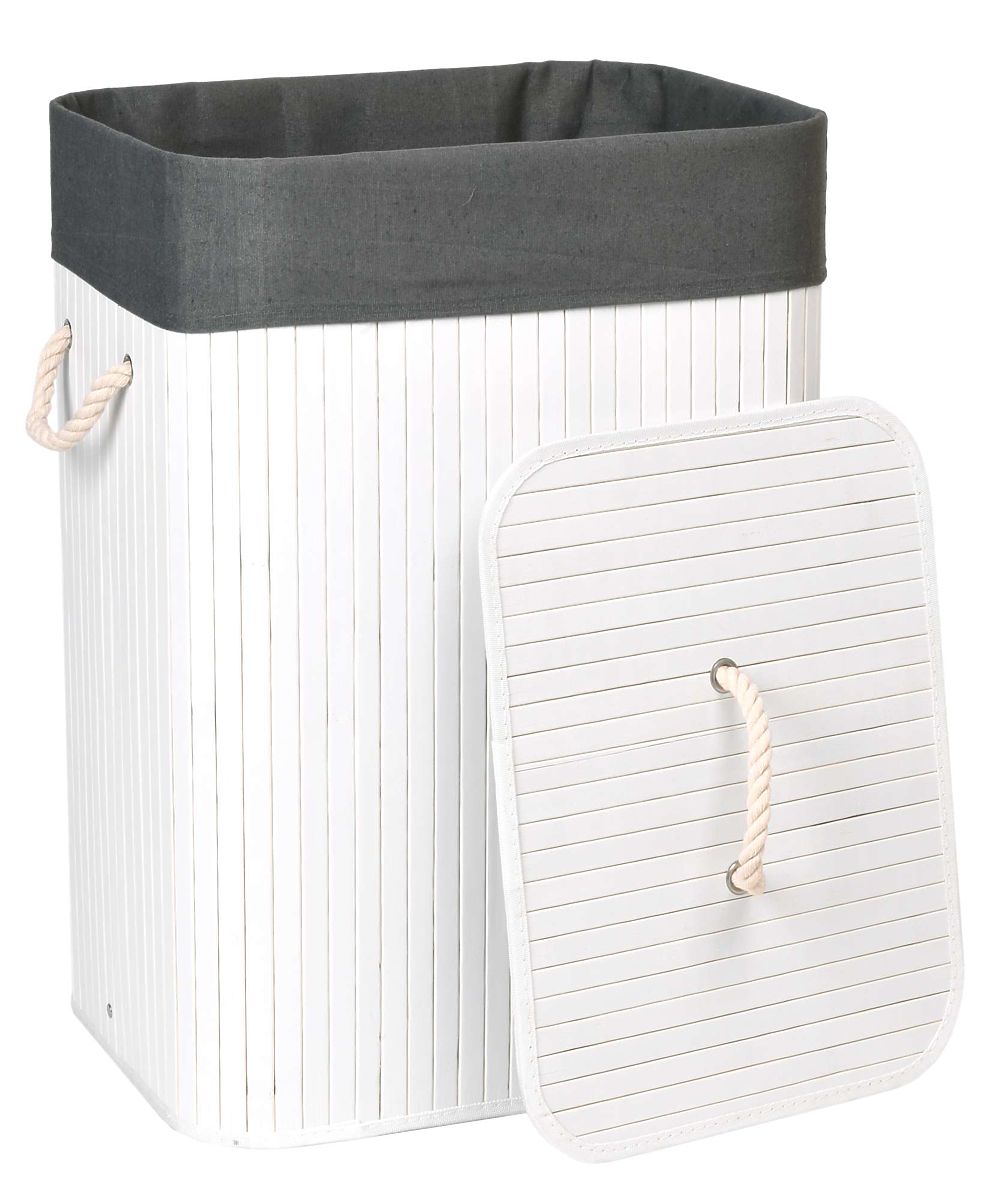 Bambusz szennyestartó fedéllel 80L fehér-szürke
