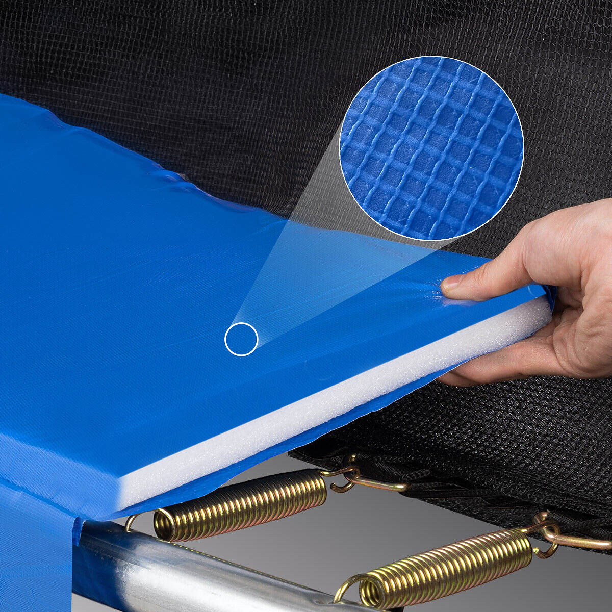 ✔️Erős rugalmas matrac - a fő matrac erős és rugalmas műanyagból készült, 275g/m2 súlyú, ami biztonságos és kényelmes ugrálást biztosít a trambulinon.