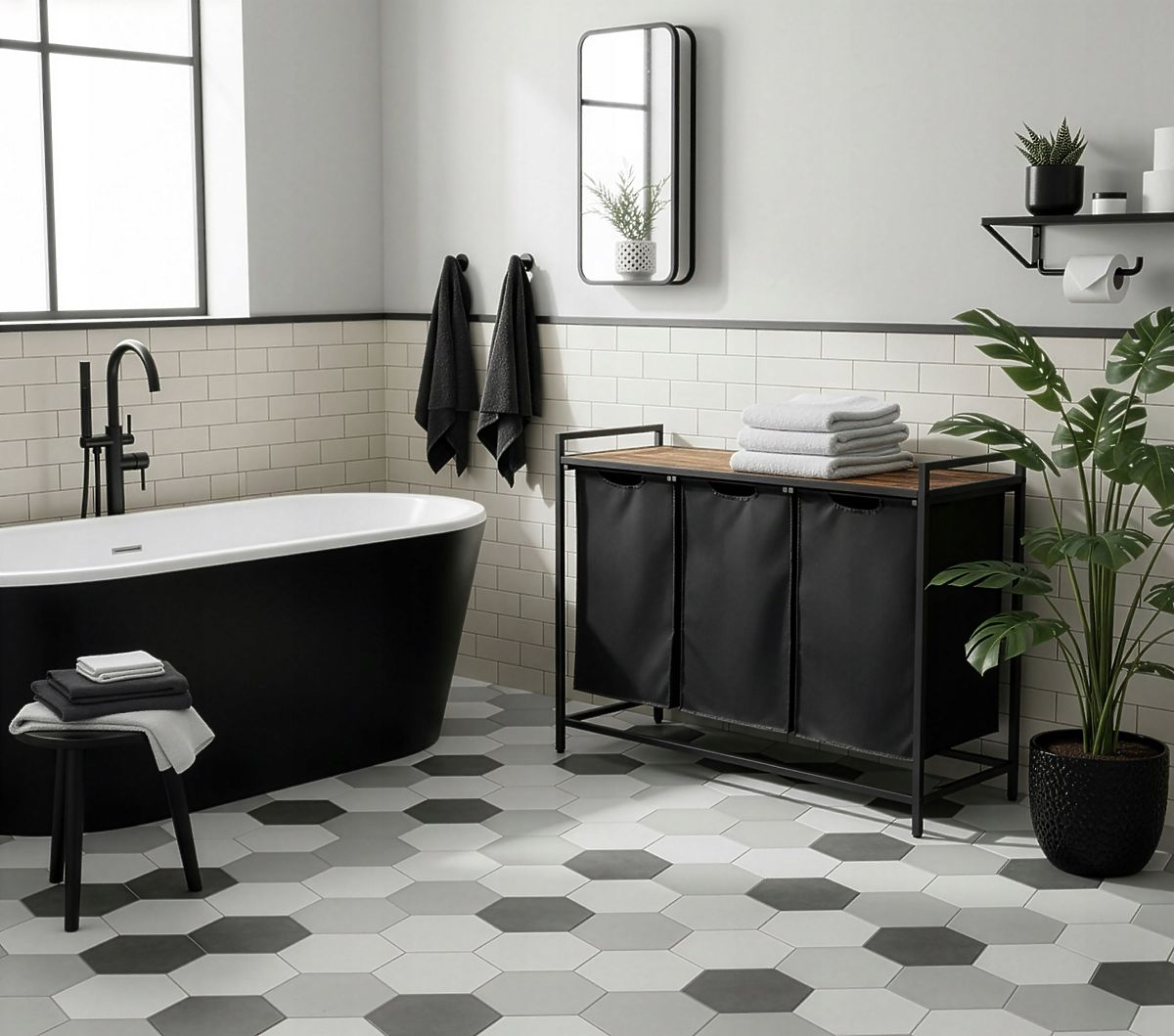 Az Artus háromrekeszes szennyestartó kiváló megoldás azok számára, akik értékelik a rendet és a funkcionalitást a fürdőszobai térben. Loft, ipari dizájnja remekül illik a modern belső terekhez, maximális kényelmet és helytakarékosságot kínálva. A három különálló rekesz lehetővé teszi a pontos szennyesszeparálást, megkönnyítve a mindennapi teendők szervezését. Ezenkívül a kosarak feletti praktikus polc ideális hely a törölközők és fürdőszobai kiegészítők számára. Az Artus kosárral nemcsak a fürdőszobája esztétikáját gazdagítja, hanem annak funkcionalitását is növeli.