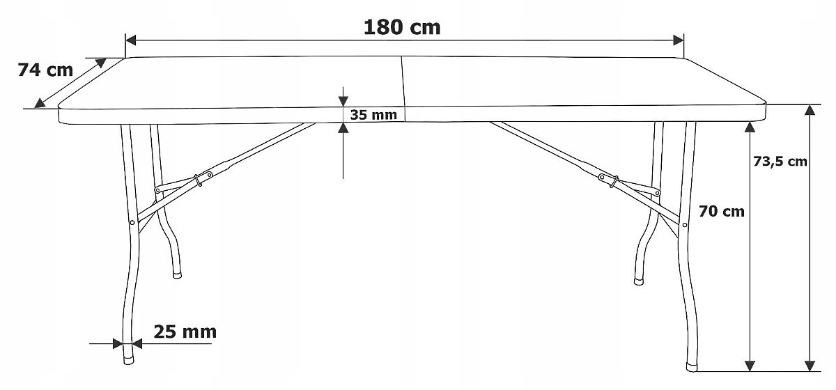 A catering készlet tartalmaz egy 180 cm hosszú összecsukható asztalt és 6 összecsukható széket, amely ideális választás különféle eseményekre. A porfestett acél szerkezet magas stabilitást biztosít. Az asztallap erős HDPE műanyagból készült. A szék acélból, PVC-ből, MDF-ből, habból és ökobőrből készült. Az asztal és a székek könnyen szállíthatók – az asztal kényelmes fogantyúval is rendelkezik. Az asztal időjárásálló. Az asztal és a székek lábai csúszásgátló végződésekkel rendelkeznek, amelyek biztosítják a stabilitást.
