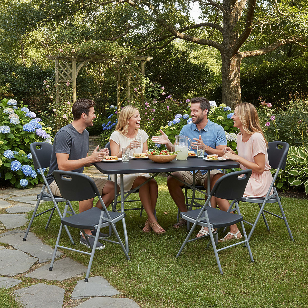 Felhasználás: kültéri, kert, céges és családi rendezvények | Ülés/asztallap színe: fekete