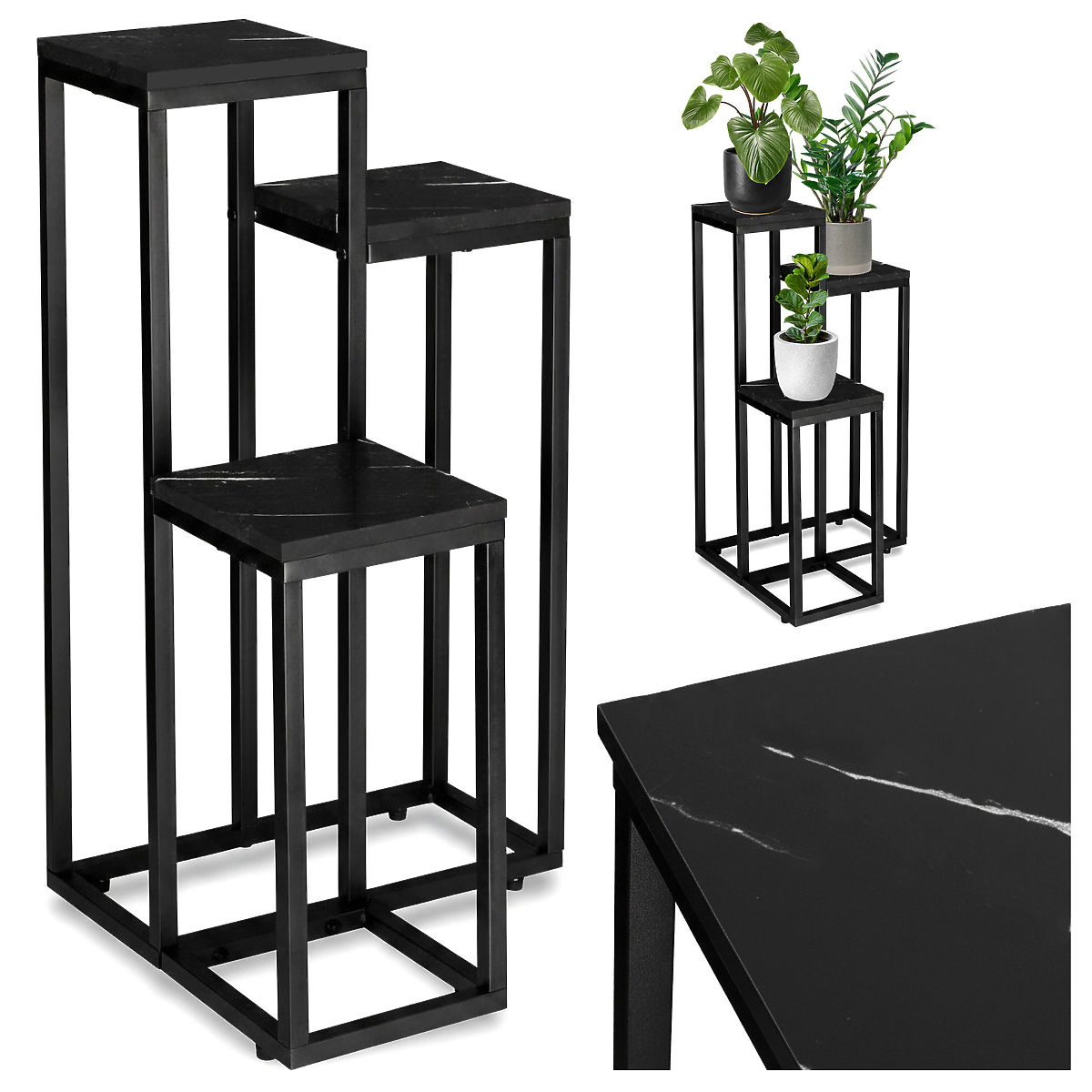 A Munir virágtartó elegáns és funkcionális kiegészítő, amely megváltoztatja a belső teret. A három szintnek köszönhetően több helyet kap a növények, dekorációk és kiegészítők számára, miközben rendet és esztétikát biztosít a házban. A minimalista dizájn finom márványhatással és stabil fekete fém alappal ideálissá teszi a modern, loft és klasszikus elrendezésekhez.