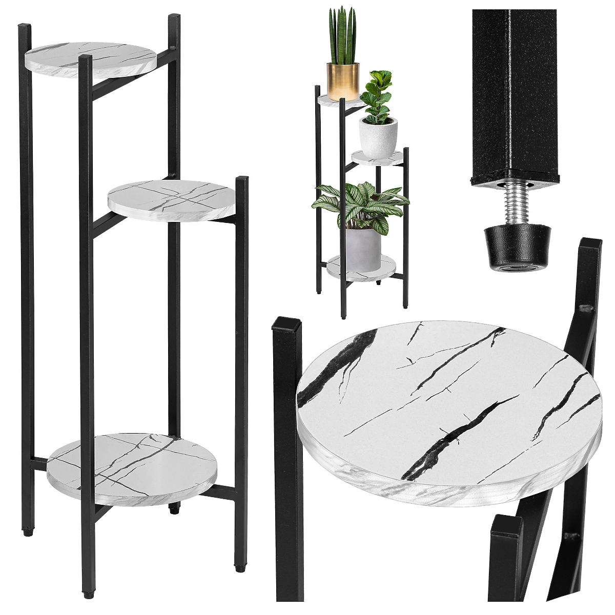 A Tretorri egy masszív virágtartó, amely porszórt acélprofilokból és márványt utánzó laminált lapokból készült. Egyszerű dizájnja és vonzó megjelenése miatt bármely modern, loft, modern vagy glamour stílusú enteriőrbe illik. Az állvány szilárd acélszerkezettel és stabil polcokkal rendelkezik a virágok és dekorációk, még a nehezebbek számára is. Az alapnál védőpárnákkal van ellátva, amelyek lehetővé teszik a szintezést. A legkiválóbb minőségű anyagokból készült, a legapróbb részletekre is odafigyelve. Kiválóan alkalmas a virágok bemutatására és egyedi tulajdonságaik kiemelésére. A Tretorri egy kivételes virágtartó, szilárd szerkezettel és érdekes dizájnnal, amelyet nem lehet figyelmen kívül hagyni.