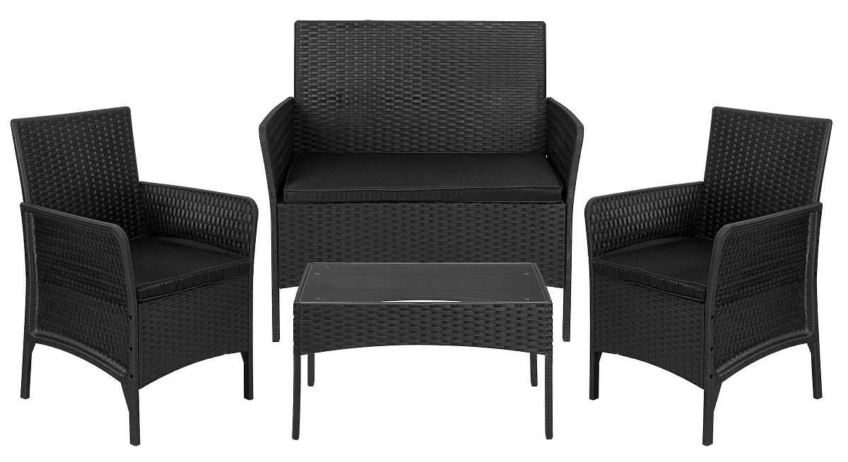 CAMELIA kerti bútor szett fekete fekete párnákkal